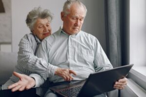 senior couple researching using a laptop depicting selecting the best standby generator September 17, 2025