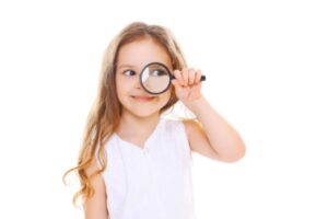 young girl holding a magnifying glass on her left eye depicting indicators of too much AC refrigerant June 4, 2025