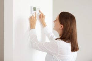 woman controlling home thermostat